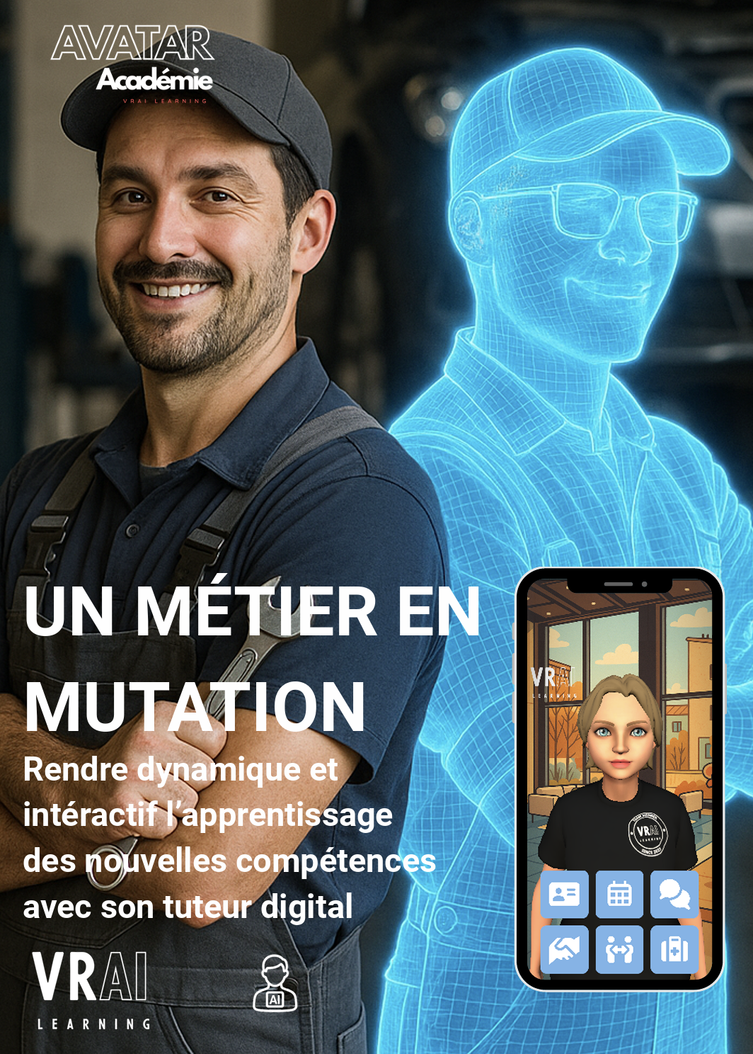 Avatar Académie est la plateforme propriétaire de VRAI Learning dédiée à la conception, au déploiement et au pilotage des avatars IA conversationnels. Elle permet de créer des scénarios pédagogiques ou d'accueil, de suivre les parcours en temps réel, et d'analyser les performances via des KPIs classiques et émotionnels. Elle est conçue pour être accessible sans compétences techniques avancées.