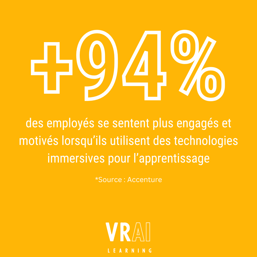 Selon une étude de PwC, les expériences d'apprentissage en réalité virtuelle (VR) permettent aux utilisateurs d'être quatre fois plus concentrés que dans des environnements d'apprentissage classiques, et 275 % plus confiants pour appliquer ce qu’ils ont appris en situation réelle.